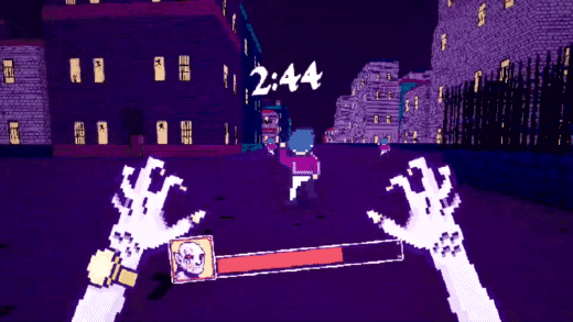 By being a "project" produced for a game jam, there's usually not much to talk about beyond the basics that the game presents. Midnight Rush follows a line of collecting as much as you can in the shortest time possible. Here you control a vampire who has an energy bar that is constantly dropping. The bar can be refilled in two ways: one is by feeding on other vampires who roam the city, and the other is by approaching houses with the inscription "bloody" on the front. Near them, just press the Spacebar and you'll recover your bar in moments. The graphics part is very cool, it features a mix of visuals and 3D movement with graphics, sprites and textures in pixel art, something similar seen in games like Megaman 8-Bit Deathmatch.